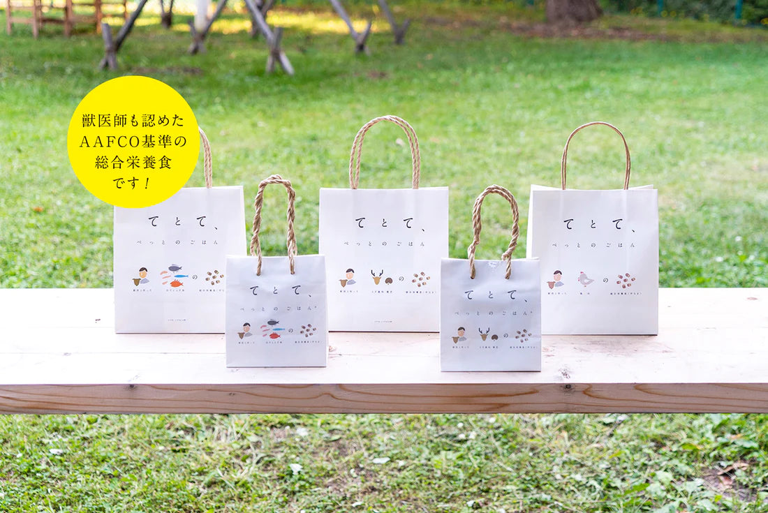 てとて、ぺっとのごはんの商品は、動物病院の目線を取り入れた「身体に良くておいしい」がコンセプトです。AAFCOの国際的な栄養基準に沿って設計されており、原材料は“北海道産のお肉、お魚や野菜”にこだわり、また多種類の機能性食品も配合しています。主原料であるエゾ鹿肉は高たんぱく低脂肪、また核酸を含んでいる鮭の白子などを多用し、これからの効果によりシニアからパピーまでどのステージのワンちゃんにも安心してあげられます。