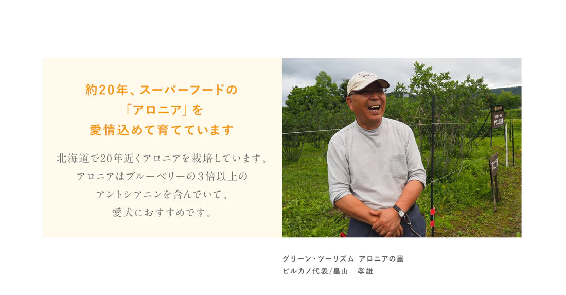 てとて、ぺっとのごはんの商品は、動物病院の目線を取り入れた「身体に良くておいしい」がコンセプトです。AAFCOの国際的な栄養基準に沿って設計されており、原材料は“北海道産のお肉、お魚や野菜”にこだわり、また多種類の機能性食品も配合しています。主原料であるエゾ鹿肉は高たんぱく低脂肪、また核酸を含んでいる鮭の白子などを多用し、これからの効果によりシニアからパピーまでどのステージのワンちゃんにも安心してあげられます。