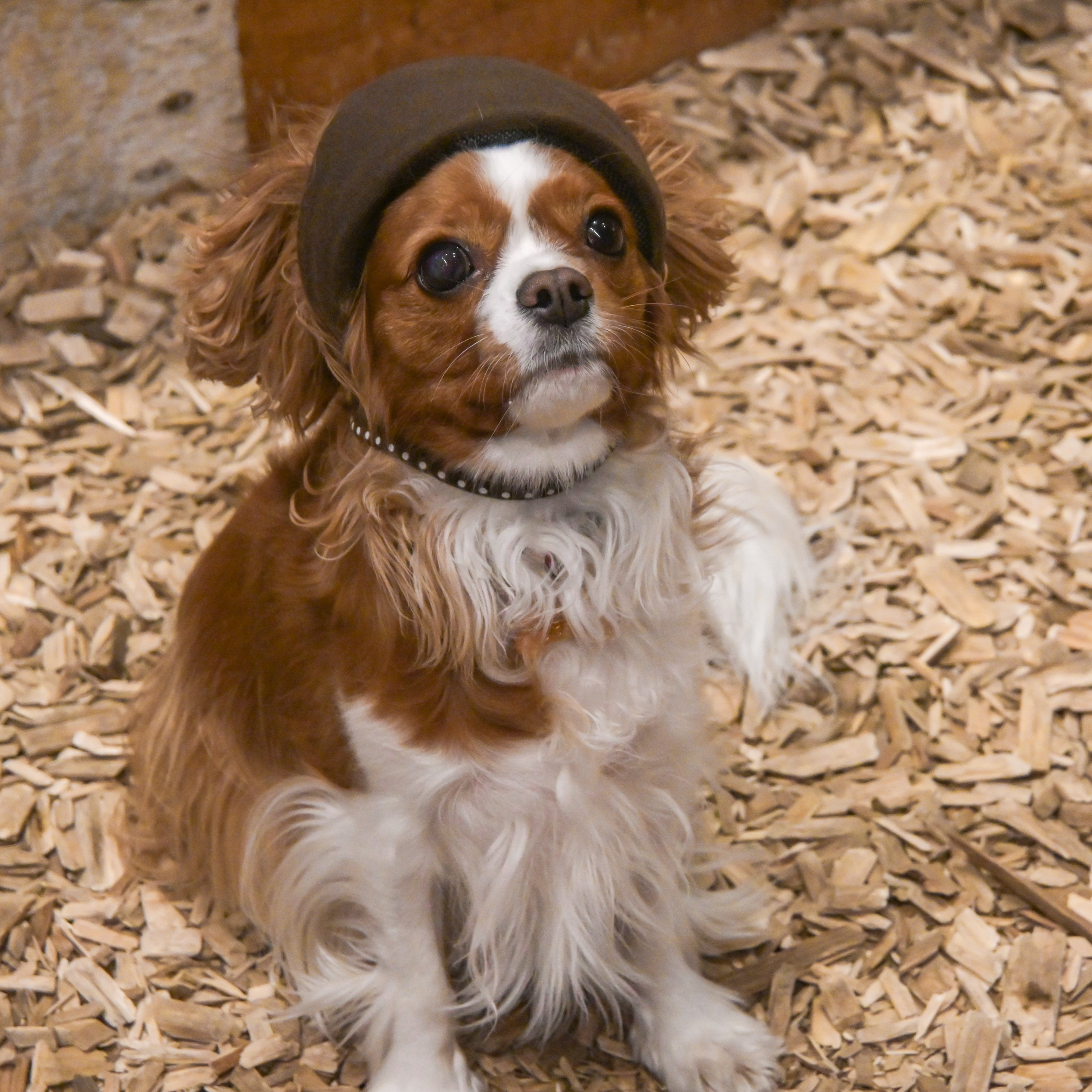 ヘッドギアは、発作が起きたり、脚が弱って倒れた際に、壁や床からの衝撃をやわらげるためのものです。